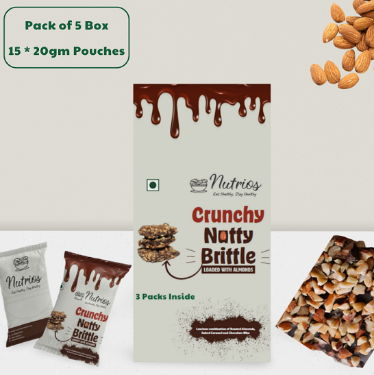 Nutty Brittle loaded with Roasted Almonds & Chocolate - (Pack of 5 Box, 275gm)